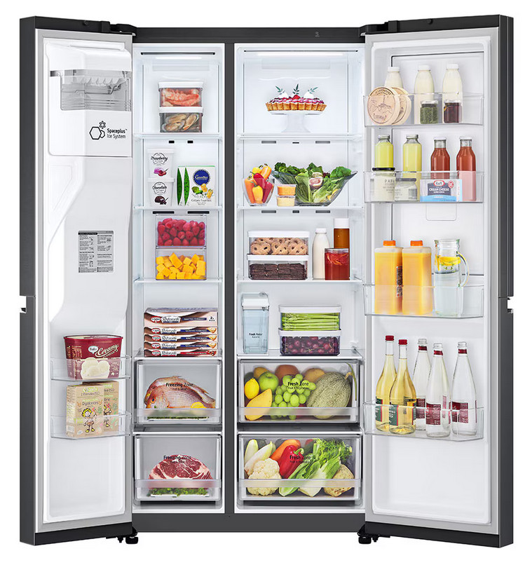 Tágas, 635 literes nettó kapacitásával ez az LG Side by Side hűtőszekrény ideális választás nagyobb háztartások számára. Intelligens funkciói, mint a Wi-Fi kapcsolat és a Smart Diagnosis™ lehetővé teszik a készülék egyszerű és kényelmes vezérlését, miközben a Lineáris inverter kompresszor energiatakarékos és csendes működést biztosít. A beépített víz- és jégadagoló vízvezeték csatlakoztatás nélkül is használható, így mindig frissítő italok állnak rendelkezésre.