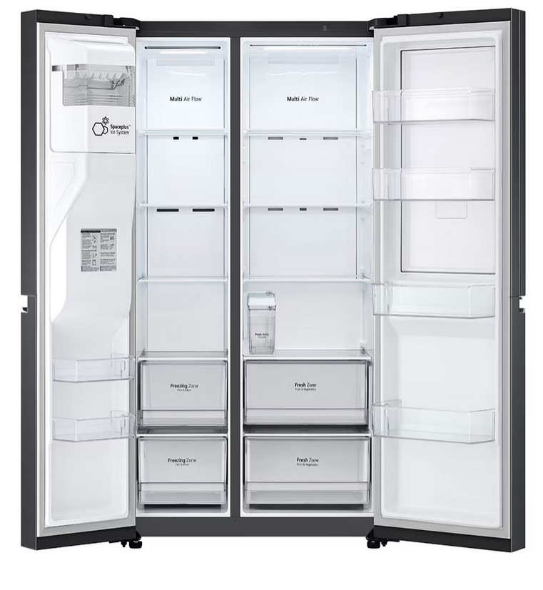 LG Side by Side 635 l-es hűtőszekrény matt fekete