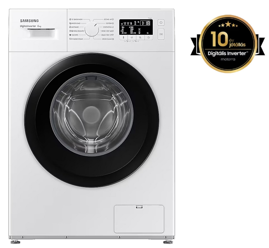Kompakt méret, hatékony működés és higiénikus tisztítás egy készülékben. A 6 kg-os kapacitás ideális választás kisebb háztartások számára, míg a Digitális Inverter motor csendesebb működést és hosszan tartó teljesítményt biztosít. A Higiénikus Gőz funkció mélyreható tisztítást nyújt, a 15 perces Gyors mosás pedig tökéletes megoldás, ha időt szeretnél spórolni a mindennapokban.